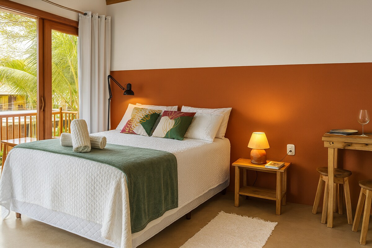 A nossa casinha foi pensada com muito carinho para trazer o máximo de conforto aos nossos hóspedes, desde uma jacuzzi incrível super privativa no deck da sua suite, enxoval inteiro de 400 fios a uma internet excelente de 200 Mb em fibra ótica para quem está de homeoffice. Nossa Vila tem 2.200 m² com lindas árvores que proporcionam um espetáculo a parte. Temos visitas diárias de 3 espécies de macacos, diversos pássaros e até bichos preguiça. :) Estamos a 2km do Quadrado e 3 km da praia + próxima