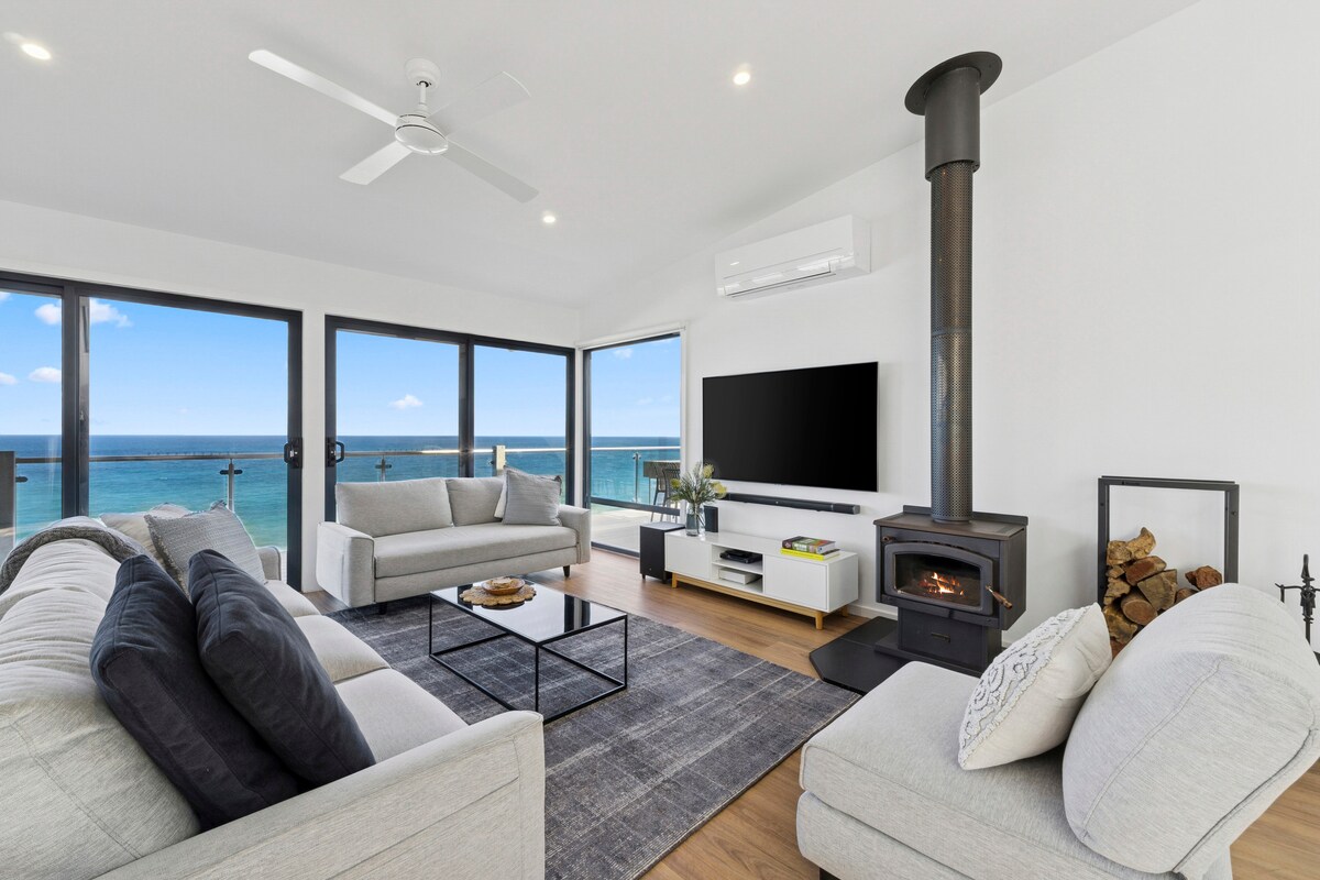 Wake above the Southern Ocean with uninterrupted views from every living space. Set on 27 private acres in the Otways, this is your own coastal retreat with a rainforest walk, waterfall and resident animals to hand-feed. Pets welcome inside with a large fully fenced garden. Guests say the views are even better than the photos. Solar-powered, rainwater-fed and EV-ready, this is off-grid living without compromise - connected when you want it, completely immersed when you don’t.