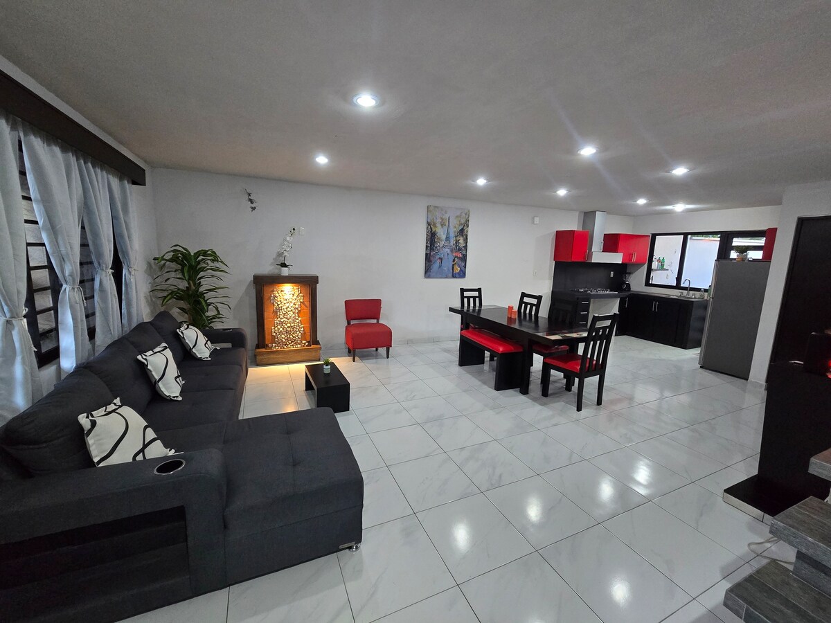 Disfruta tu descanso en la comodidad de la casa, se ubica en zona muy tranquila, acceso rapido a centro de cordoba y de fortin. A 3 mins de zona de cines, gyms, restaurantes. La casa cuenta con Garage para 2 autos, porton electrico, sala comedor, cocina con micro, cafetera,licuadora, estufa, refri. 2 Recamaras climatizadas, 1 con cama queen, otra con 2 matrimoniales, 3 baños completos, sala de tv con sofa-cama. En tercer nivel, cuenta con area de roof garden, con asador, mesa y sillas.