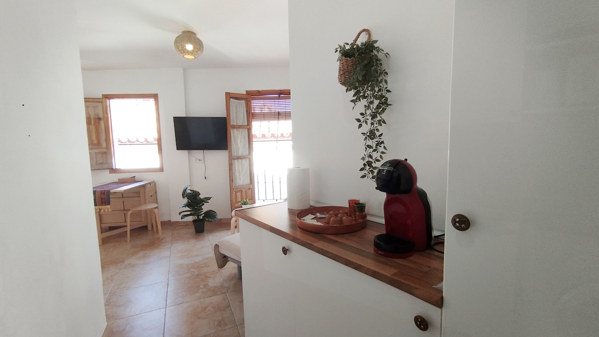 Donde las escaleras recitan versos!!! Alojamiento independiente con terraza en casa patio, muy pintoresca y alegre. Lugar lleno de vida que transmite muy buena energía. Patio colorido, con brocal de pozo árabe y columna romana Oasis de frescor en verano. Ideal para artistas y músicos Posibilidad de uso del patio para eventos culturales, y opción de recibir clases de hand. Ambas cosas tendrán un coste adicional. Nuestro patio y escalera ha sido escenario en vídeos del Barrio o de Mario Díaz.