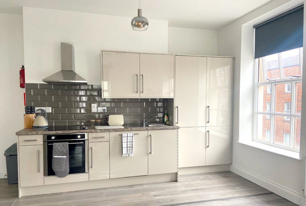 Unbeatable location in Cork City Centre - Ideal for friends, families & city break lovers who want to be close to everything. Walk to bars, restaurants, shops & transport links. Perfect for Christmas shoppers exploring the festive city lights! (stairs only) with 1 King bed, 1 Double, L-Couch,WiFi, Full kitchen,Dining table/chairs,wardrobe space,Instant hot water,Central Heating,Power shower,Smart TV, washer/dryer & coffee machine. Towels/linens provided. Paid parking near @ 25% discounted rate