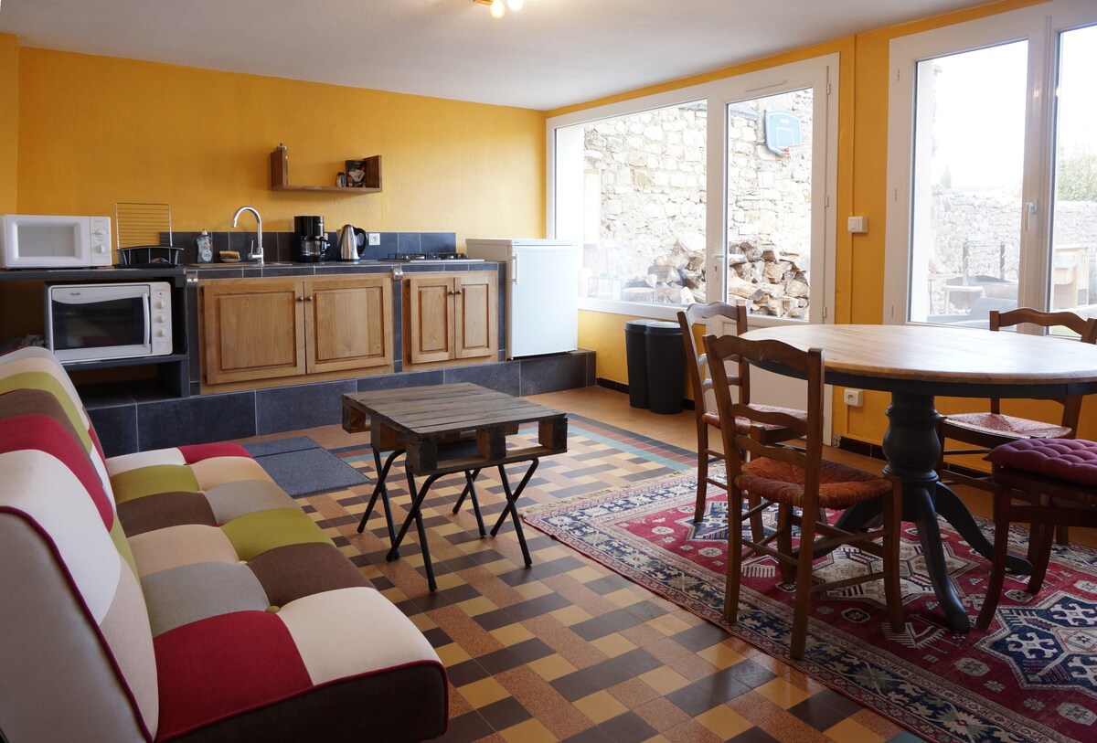 ¿Quieres una escapada romántica? ¿un lugar insólito? Bienvenido a nuestra Masía del siglo XVIII totalmente renovada para ofrecerle una estancia cerca de la naturaleza. Nuestro apartamento creado en la frescura de bóvedas de piedra le hará vivir una estadía original. Desde su terraza sombreada disfrutará de la vista de las plantaciones de olivos y robles de trufa. Y también será recibido por Lulu & Griotte nuestros dos perros que acompañan a Nadine en su cosecha de trufas.
