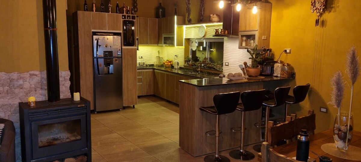 Frente al río, cerca del pueblo, zona con mucho bosque y vegetación. El sueño de mi madre es una casa independiente con jardín situada en Trapiche. El alojamiento ofrece vistas a las montañas y está a 20 km de Potrero de los Funes. Hay aparcamiento privado gratuito en las instalaciones. La cocina incluye horno y microondas. Tiene una hermosa galería para sentarse a comer. La dueña de la casa es servicial y gentil. Siempre dispuesta a que tu estancia sea la más calida!