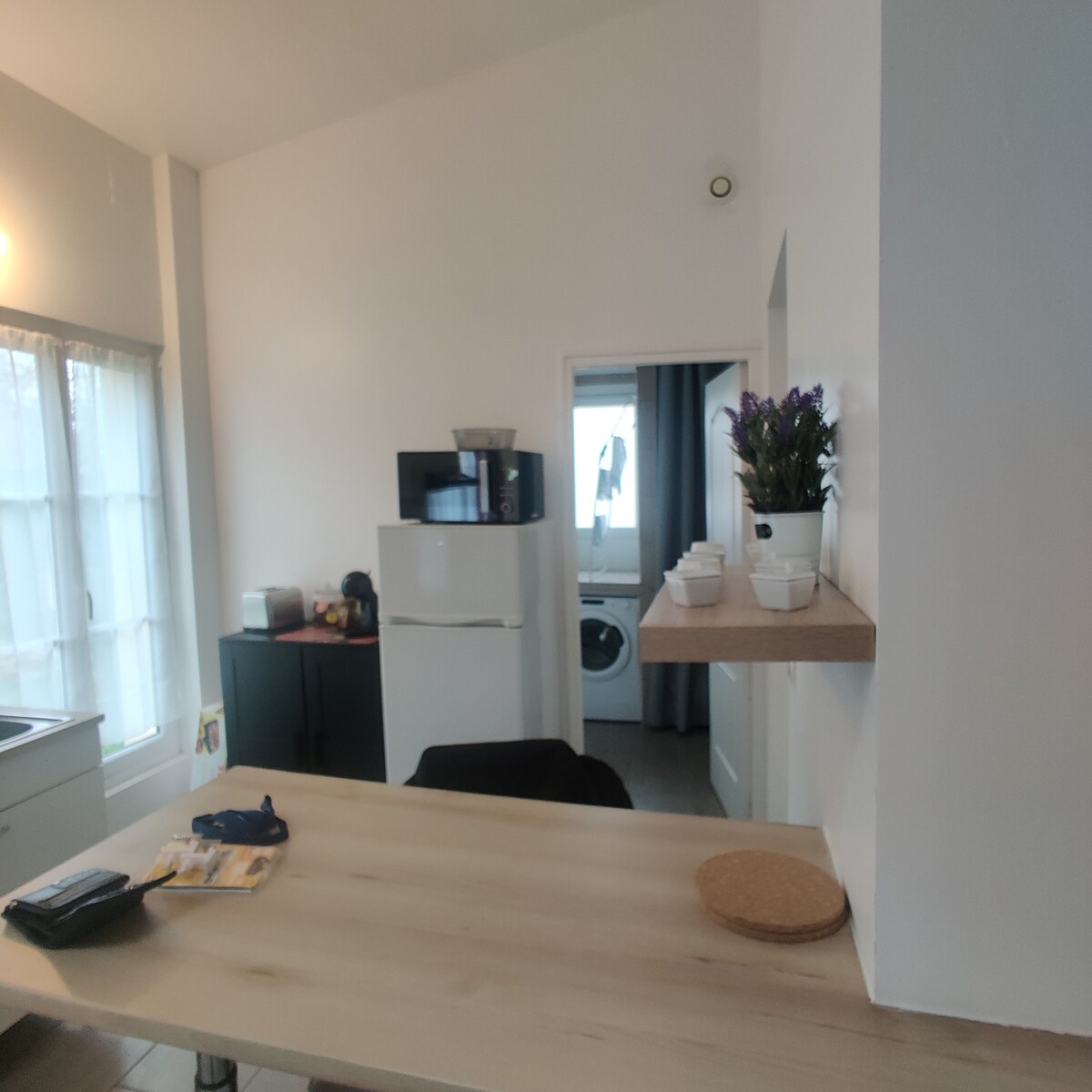 Suite en el corazón de Montargis. Sala de estar con cocina equipada (horno, microondas, placa de inducción, nevera, lavavajillas, lavadora, nespresso), comedor, TV con canal + dormitorio con cama de 160x200, TV con canal, ropa de cama premium, baño italiano, Wi-Fi de alta velocidad, aire acondicionado, toallas y jabones incluidos. Calle tranquila, aparcamiento gratuito o privado ( opcional ), llegada autónoma con cerradura conectada. Servicio opcional: desayuno, terminal eléctrico