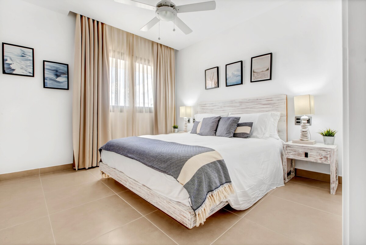 Hospédate en Punta Cana Village, una comunidad segura y exclusiva a solo 3 minutos del aeropuerto y a 10 minutos caminando. Este apartamento de 3 dormitorios y 3 baños ofrece aire acondicionado, Wi-Fi de alta velocidad, cocina totalmente equipada y dos estacionamientos seguros. Relájate en la piscina del residencial o deja que los niños disfruten del patio de juegos. Cerca de Blue Mall, Supermercado Nacional, restaurantes, bares, bancos y lavandería—todo lo necesario para una estancia perfecta.
