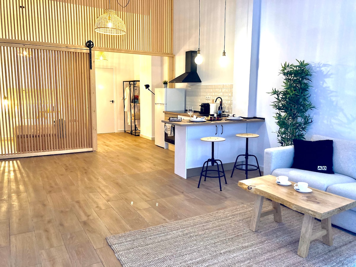 Encantador Loft de diseño. Reformado, con techos altos. Superficie 65 m2, un solo ambiente tipo estudio. Con cama doble y un sofá cama de 90 x 190 cm. Muy luminoso, con ventilación cruzada y balcón en calle tranquila. 2do piso sin ascensor. Nº registro turismo VT-450435-A Si el apartamento no está disponible, puedes consultar https://www.airbnb.es/rooms/32227380?s=51