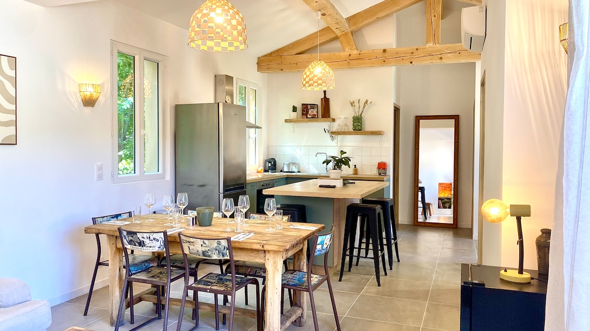 Impresionante casita de 53 metros cuadrados, con 2 dormitorios, un baño y cocina abierta. ¡Disfrute de las vistas paradisíacas del jardín, de la terraza privada de 25 metros cuadrados con pérgola y toldo, y del canto de las cigarras, los pájaros y, a veces, la rana del estanque! La casa es independiente de la masía, sin vecinos. Terreno de petanca, amplio aparcamiento. Nuevo diseño de un diseñador de interiores. Tranquilidad y serenidad aseguradas :)
