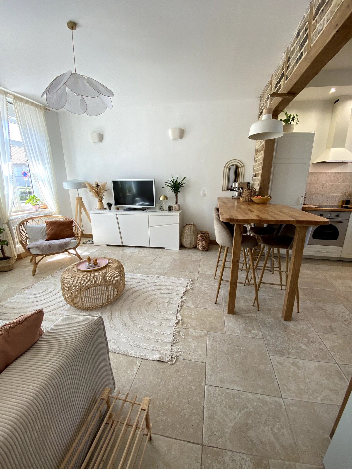 Apartamento dúplex con ambiente bohemio chic, estilo casita de 57 m² A 10 minutos del túnel bajo el Canal de la Mancha. Se encuentra en una antigua casa señorial dividida en tres viviendas. Podrá disfrutar del jardín compartido en la parte posterior de la misma para relajarse o comer bajo el sol del Norte. Atención: el mobiliario de jardín solo está disponible de mayo a octubre. Los pequeños+: Una plaza de aparcamiento está reservada para usted en frente de la casa. También tiene acceso a Netflix y Disney+
