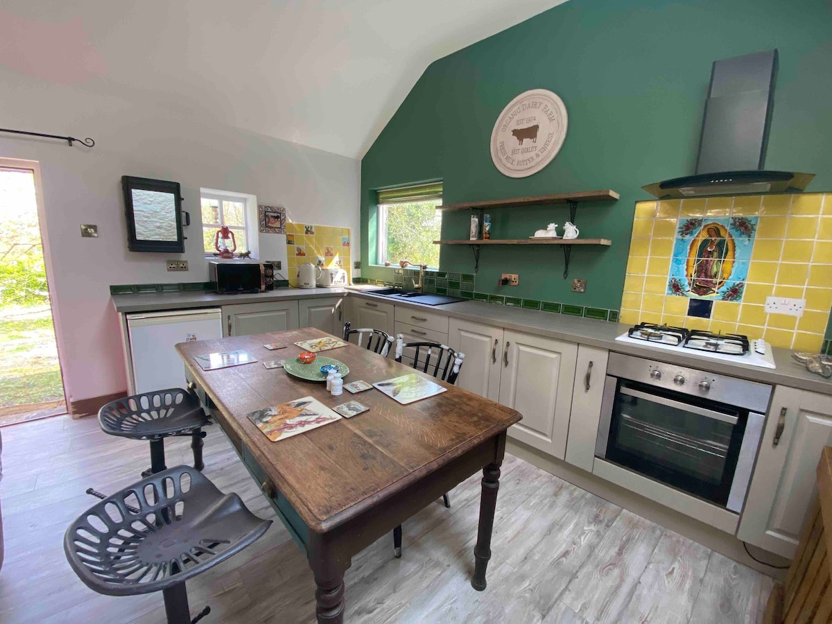The refurbished 200 year old stone milking parlour is a unique self contained studio, perfect for a peaceful break, a base for your Irish travels, or seeing the local ancient sacred sites and the beautiful midlands. High Speed Fiber Broadband and extensive smart TV channels. SuperKing size bed, orthopaedic mattress, vegan hypoallergenic pillows and duvet, minimum 400 thread count sheets. The cottage is not suitable for young children, due to to the ponds, the hot stove, uneven surfaces etc.