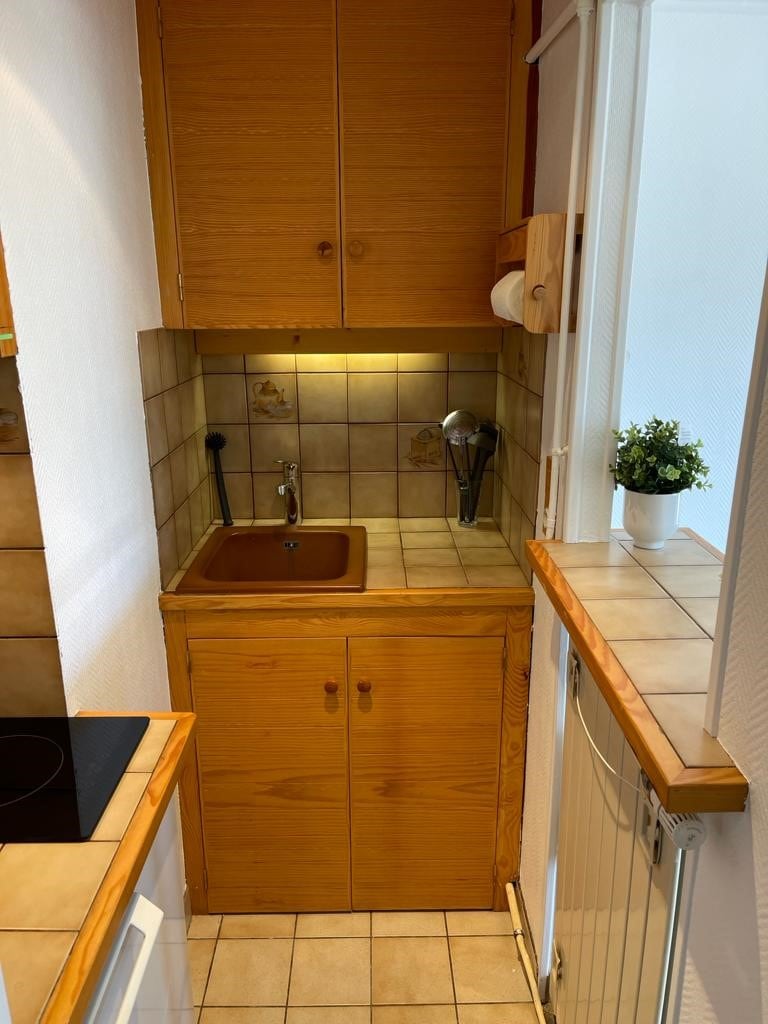TARIFA CURA 900€/21noches Leer bien en PLANOS - descripción del barrio para acceder a la estación Este alojamiento de unos 30 m2 es tranquilo y ofrece una estancia relajante para toda la familia. Situado en la planta baja del chalet, podrá disfrutar de su pequeña terraza exterior, está totalmente amueblado y puede alojar hasta 4 personas. El estudio tiene un sofá cama (160/200) y dos pequeñas literas 1 Perro aceptado bajo condiciones (tarifa adicional 5€/día) No se aceptan gatos