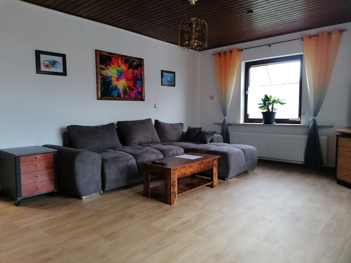 Whether you are alone, as a couple, with friends or your family, in my 120 square meter holiday apartment, with a new bathroom , new kitchen, 3 bedrooms, large living room with large new sofa bed and 50 inch television in the living room as well as in all rooms with large windows, a beautiful terrace with a great view, a total of 3 televisions, in each of the two bedrooms, and only 5 minutes from the city Rothenburg o.d.T. away you are very welcome here