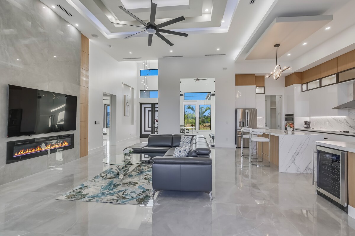 Villa510 es un refugio frente al mar de nueva construcción ideal para estancias prolongadas en Cape Coral. Disfruta de las vistas tranquilas del agua salada del canal y los manatíes desde el lanai, luego relájate en tu piscina privada climatizada y spa, perfecto todo el año. La cocina exterior y el lanai crean una rutina diaria fácil y cómoda. El interior ofrece tres dormitorios privados con baño, un estudio con colchón inflable opcional, sala de estar abierta y televisores en cada habitación. Cerca de tiendas, restaurantes y playas, perfecto para los amantes de la nieve que buscan comodidad y facilidad.