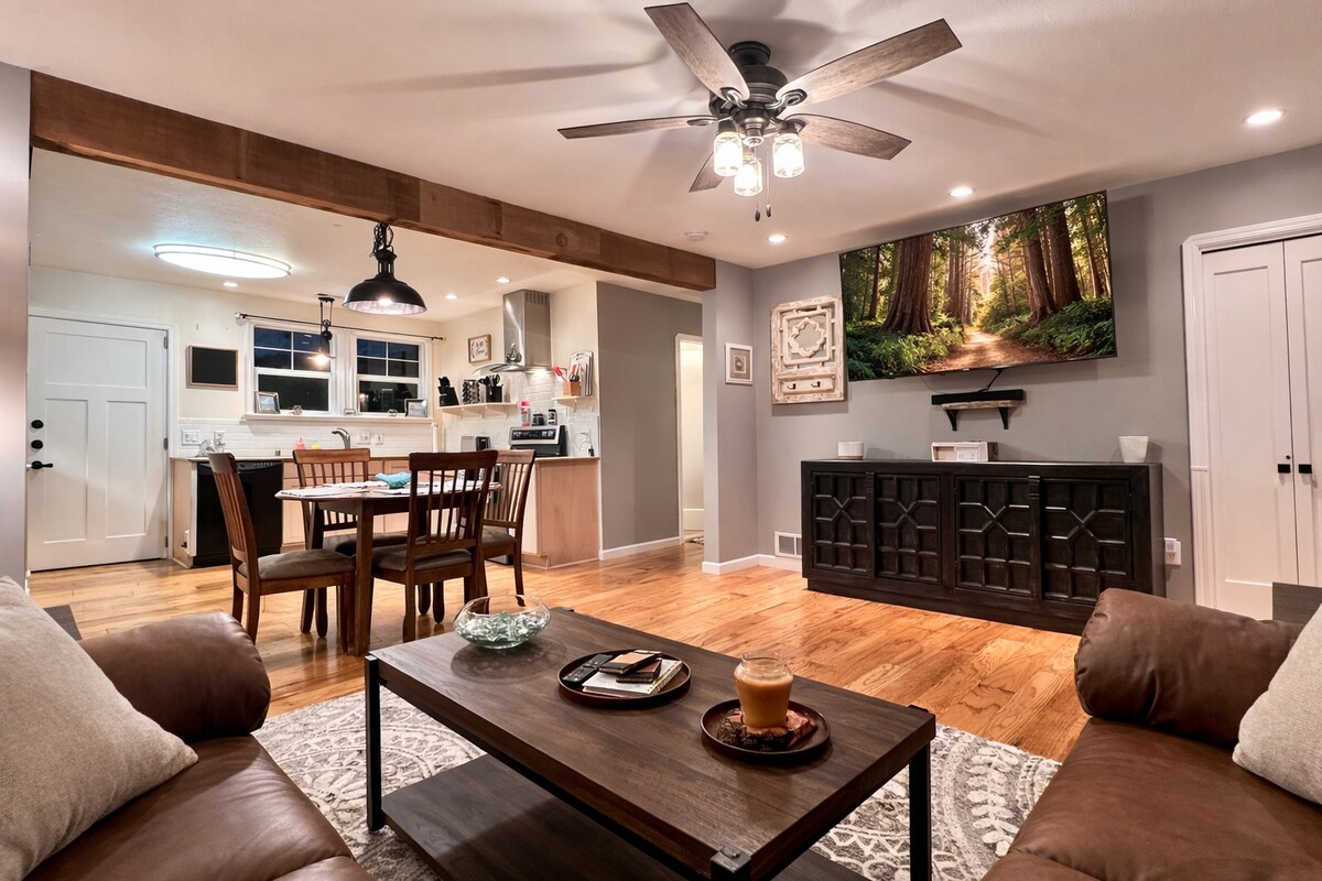 Esta acogedora joya está ubicada en el centro de un barrio cerca de todo, lo que la convierte en una base de operaciones ideal y un punto de lanzamiento para todas tus actividades. ¡Estás a 4 minutos de impresionantes vistas al mar y explorando las piscinas de marea y a 9 minutos de abrazar una secuoya gigante! Si te alojas, relájate y relájate cómodamente en la cama tamaño king y queen, con un patio totalmente vallado para mayor privacidad; wifi; TV lista para Netflix; estacionamiento en la entrada; comodidad de una cocina bien equipada para cocinar.