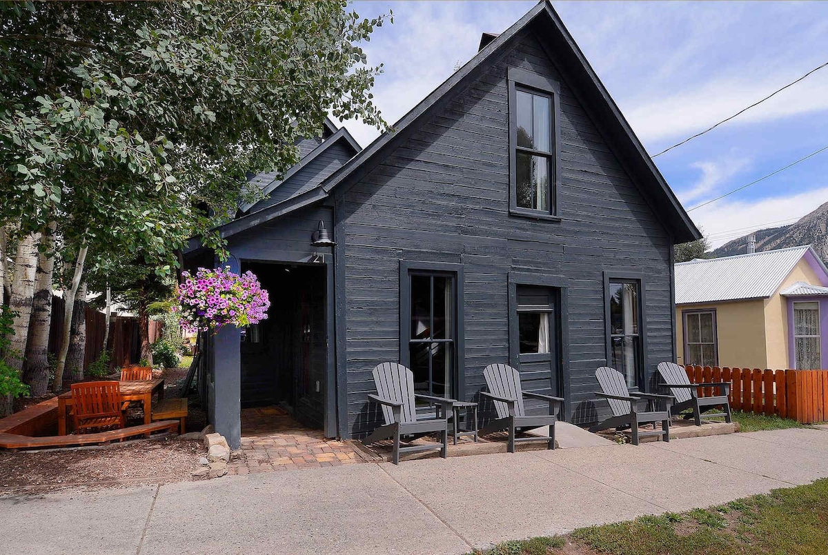 Rental Lic#001042 Pinewood Cottage sleeps 7 in beds plus 1 in a pull-out couch! This is a duplex. Book with next door Chestnut Cottage, your party can comfortably sleep 14! Big views! 3 bedrooms plus a loft! Perfect in-town location 1 block to FREE Shuttle! OUTDOOR PRIVATE HOT TUB, patio, and fire pit, along with indoor FIREPLACE, are the perfect way to unwind after exploring the mountains, skiing, hiking, biking, or smelling the roses.