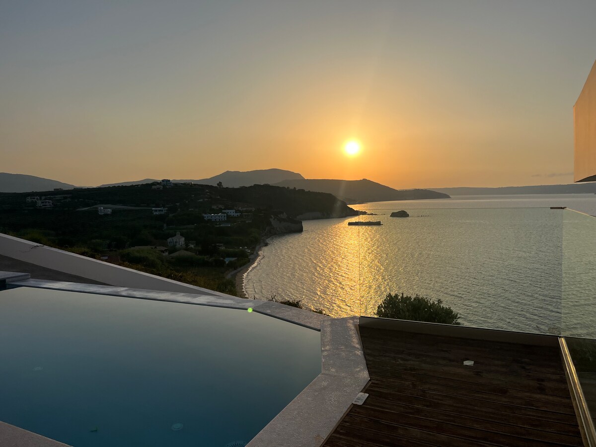 Villa frente al mar con piscina, acceso al mar y vistas al atardecer