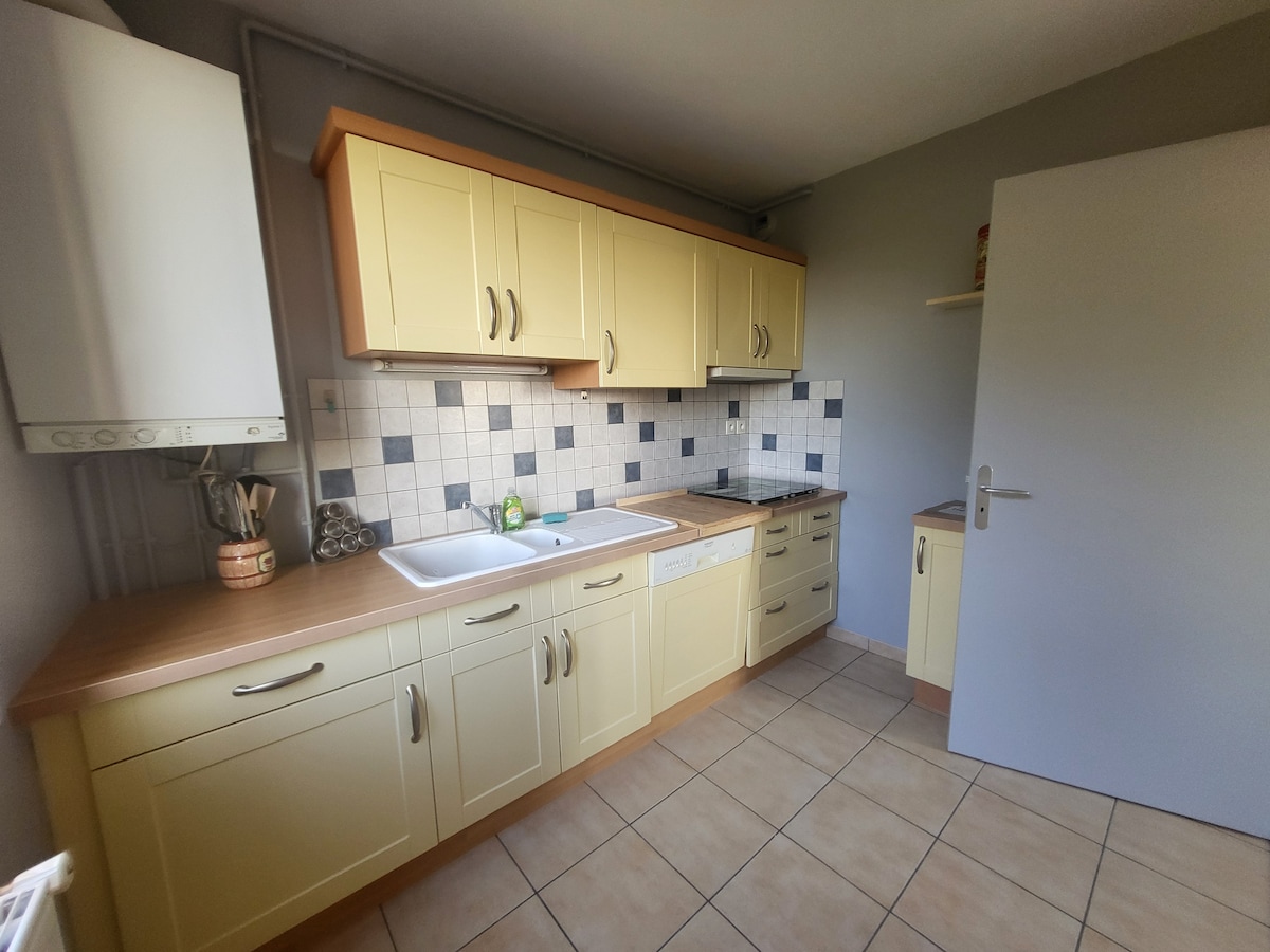 Descubra nuestro dúplex luminoso y elegante, perfecto para una estancia. Acogedora sala de estar con sofá cama, TV y WiFi. Cocina equipada. Habitación acogedora en la planta baja con baño moderno (se proporciona gel de ducha). Sábanas, toallas incluidas. Estacionamiento gratuito frente al edificio. Zona comercial a 3 min: restaurantes, tiendas, hipermercado. Llegada autónoma gracias a nuestra caja de llaves. ¡Reserva rápido para una experiencia única!