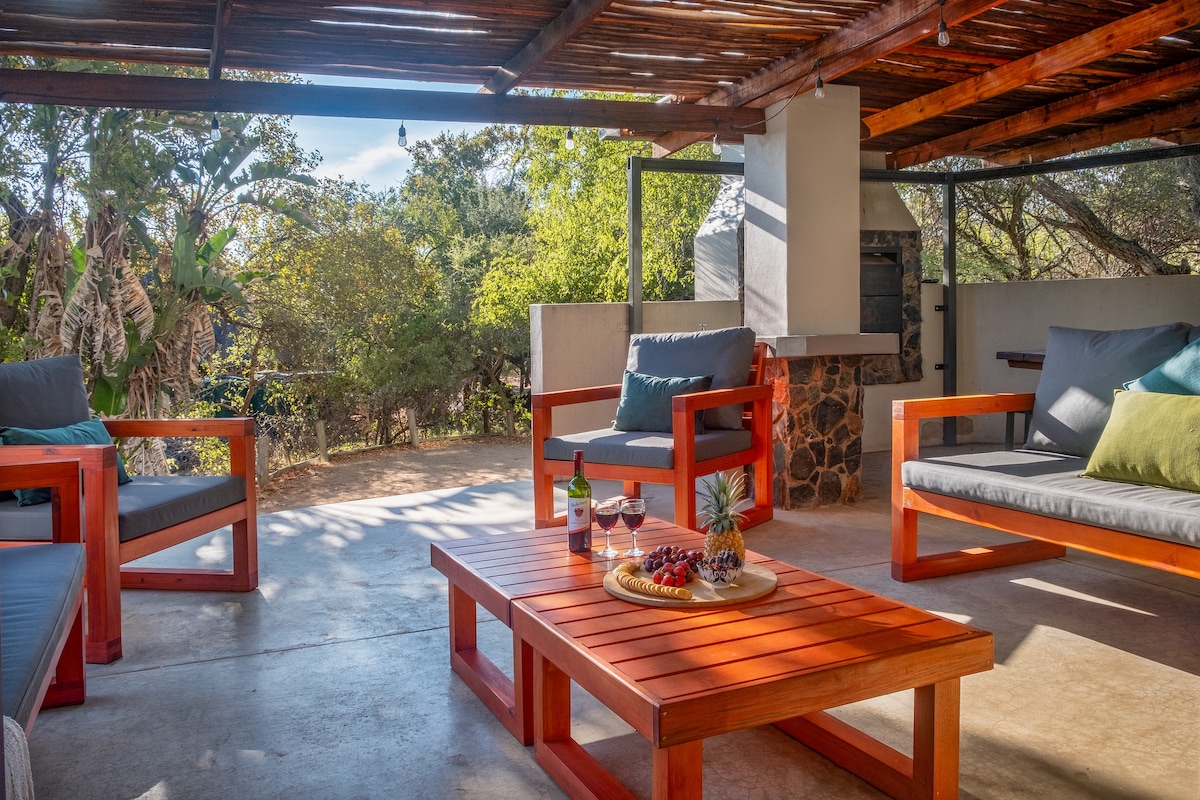 ¡The Wild Bunch Safari House es un lugar especial donde los animales deambulan libremente por la casa! Esta casa independiente con cocina está decorada en estilo africano con una impresionante piscina (profundidad 1,6 m + asiento martini) integrada en el «stoep» (terraza). Adjunta hay una ducha exterior (árbol) y, por supuesto, un gran braai africano y un pozo de fuego. La casa también cuenta con un sistema de respaldo para ayudar a través de las horas oscuras de Loadshedding en Sudáfrica. A solo 20 minutos de la puerta del puente de cocodrilos en el Parque Nacional Kruger.