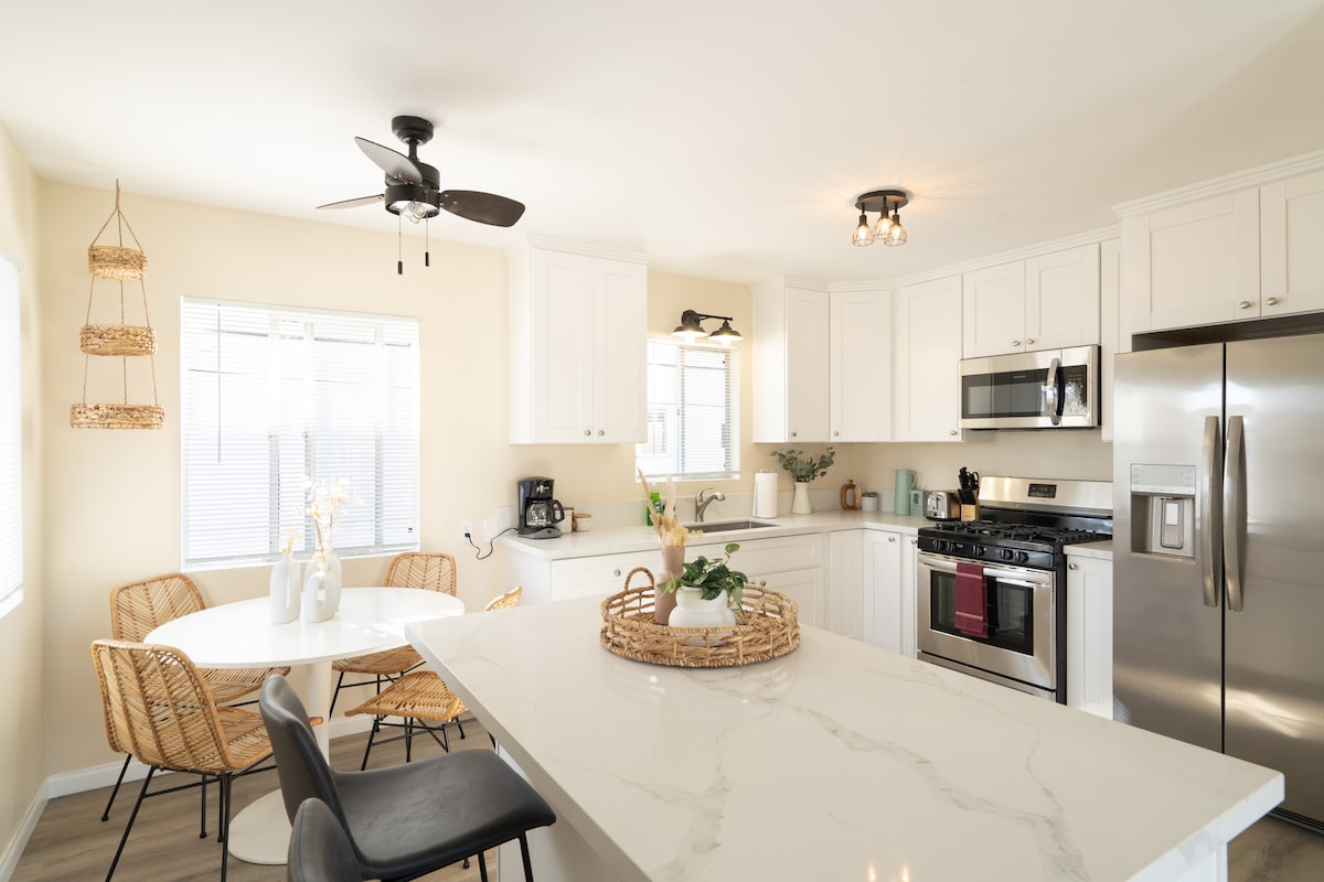 ¡Disfruta de la comodidad y el estilo en esta encantadora unidad de arriba! Bañado a la luz del sol con tonos terrosos suaves y una decoración boho chic, este acogedor espacio cuenta con una sala de estar espaciosa perfecta para la relajación. Cocina en la cocina totalmente equipada y disfruta de las comidas en el acogedor comedor. Con dos hermosas habitaciones, te sentirás en casa. Este elegante refugio es ideal para viajes familiares o escapadas de amigos a pocos minutos de impresionantes playas y atracciones de San Diego. ¡Reserva ahora para disfrutar de una estancia inolvidable!