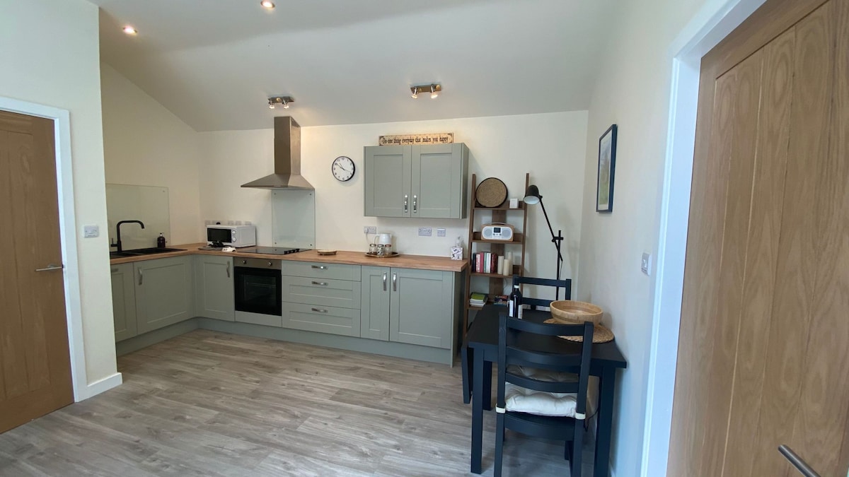 Un apartamento recién reformado con una amplia cocina/sala de estar de planta abierta con todos los elementos básicos y esenciales que necesitas durante tu estancia. Acogedor dormitorio con cama de matrimonio, armario y cajones. Completo con baño privado con inodoro, lavabo y ducha. Aparcamiento exclusivo fuera de la carretera a solo 1 minuto a pie del apartamento. Ten en cuenta que este apartamento está en el segundo piso, por lo que hay que subir 2 pequeños tramos de escaleras para acceder. No es adecuado para personas en sillas de ruedas o que tengan dificultades para caminar.
