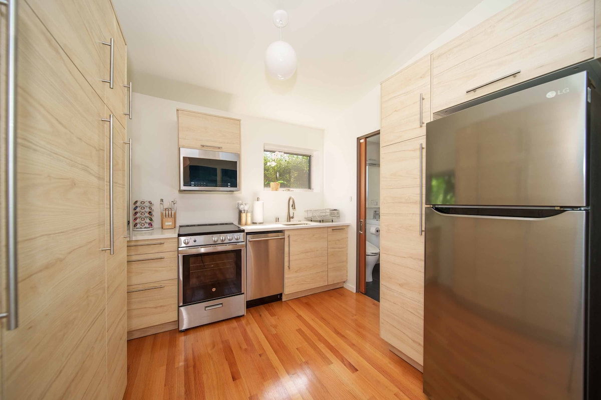 Loft de un dormitorio elegantemente diseñado en las colinas al sur de Ventura Boulevard con impresionantes vistas y privacidad. Cocina y baño modernos a estrenar. Apartamento de un dormitorio con cama tamaño queen (en el dormitorio) y un sofá cama en la sala de estar. Tiene capacidad para 2-3 personas. Adecuado para familias. No hay ascensor, unos 20 escalones fáciles hasta la suite. Fácil aparcamiento gratuito en la calle. A 10 minutos a pie del famoso Ventura Blvd, excelentes restaurantes y tiendas, el estudio Millenium Dance está a 10 minutos.