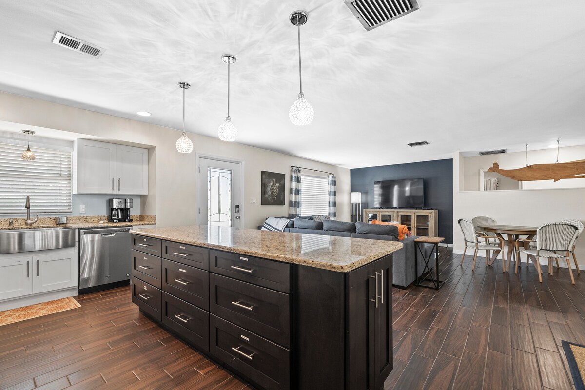 ¡¡YAY!! ¡¡ES HORA DE DIVERTIRSE BAJO EL SOL!! ¡Te damos la bienvenida a este alojamiento renovado y encantador en un encantador y tranquilo barrio de "Old Florida"! La luminosa sala de estar incluye un televisor inteligente de 50pulgadas, barra de desayuno con taburetes y mesa de comedor. ¡La cocina está EXTRA abastecida! La SUITE KING tiene un baño y hay una habitación Coral Queen y un dormitorio Groovy, con una cama queen más una cama nido doble, que comparten un baño en el pasillo. OSR está a poco más de una milla del centro de la ciudad, rampas para botes y todo lo que King's Bay tiene para ofrecer.