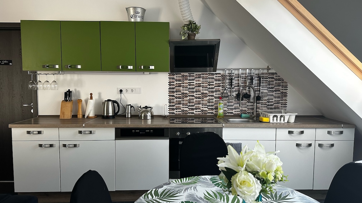 ¡Relájate en este nuevo espacio, perfectamente equipado y elegante, y en el amplio jardín! Sparkling Apartment es un hogar tranquilo, respetuoso con la naturaleza y discreto desde donde se puede llegar al centro de Balatonfüred y a la orilla del lago Balaton en pocos minutos. Perfecto para excursionistas y ciclistas. La escalera que conduce a la galería es empinada, así que no vengas con niños que aún no puedan subir o bajar las escaleras de forma segura. Ofrezco una cuna de viaje, una bañera para bebés, un cambiador y una trona.