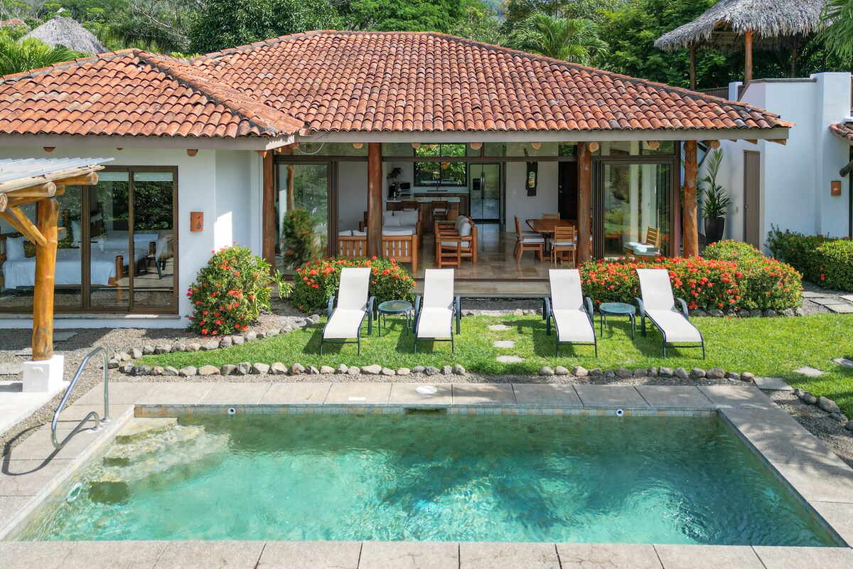 Casa Piñuela es una villa privada con vistas al mar, una terraza envolvente y una piscina situada a 20 minutos de las playas de Tamarindo y Avellanas. Esta encantadora casa tiene una cama tamaño king, una acogedora sala de estar, una cocina totalmente equipada, un espacio de trabajo designado y una hermosa ducha al aire libre con bañera. Diseñado para la comodidad y la privacidad, es perfecto para parejas o nómadas digitales. Entre los detalles más cuidados se incluyen sábanas de algodón 100 %, utensilios de cocina de acero inoxidable y productos de limpieza y baño no tóxicos.