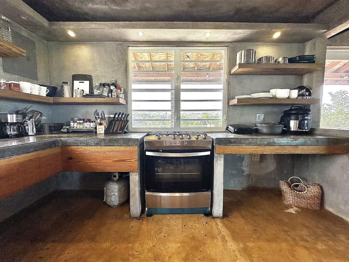 Esta pequeña casa del árbol se encuentra en la encantadora Finca Victoria en Vieques: finca-victoria.com. Ubicada en la mágica isla de Vieques, esta unidad te ofrece toda la diversión de una casa del árbol y el diseño único de una casa pequeña. La primera planta tiene una terraza rodeada por un jardín con cocina, baño, armario y ducha exterior. Arriba encontrarás una cama tamaño queen y un hermoso balcón con unas increíbles vistas al mar. El yoga de cortesía y el desayuno ayurvédico vegano están incluidos en tu estancia.