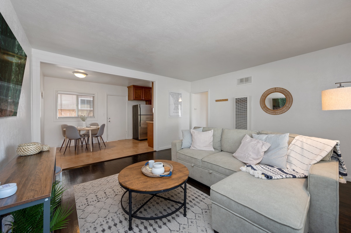 *LEE EL ANUNCIO COMPLETO * Perfecto 1 BR/1 BA hogar para trabajo remoto/un viajero que busca alojarse en LA. Ubicado en Culver City, a solo 4 millas de Venice Beach/Marina del Rey, a 15 minutos del estadio SoFi y a poca distancia a pie de restaurantes y del centro de Culver City. Ideal para estancias prolongadas y trabajo remoto: -incluye todas las comodidades de un hogar -dormitorio espacioso con una cama tamaño queen y espacio de trabajo con un monitor - Cocina completa con té/café. - Televisor inteligente equipado con Netflix.