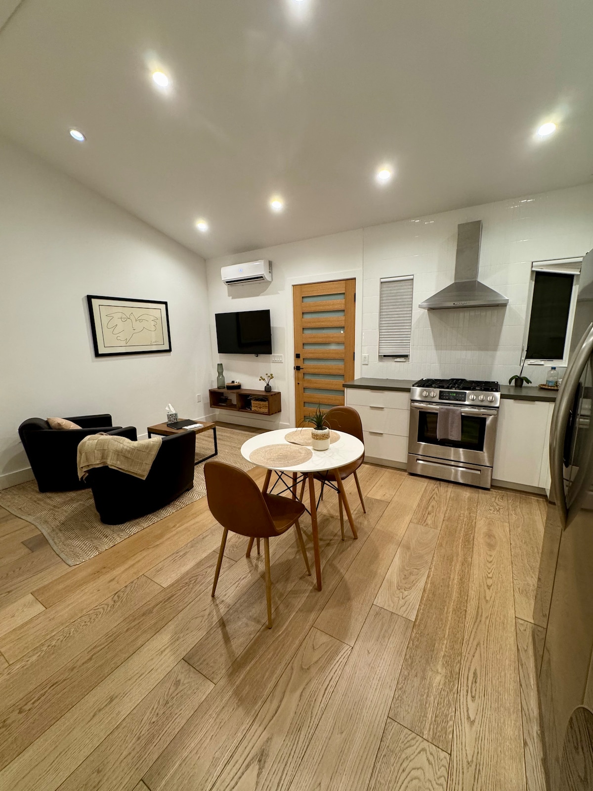 Esta moderna casa de campo de 500 pies cuadrados recién reformada, ubicada en un barrio seguro y transitable, es la escapada ideal para dos adultos. Con una cocina completa y un baño privado, este espacio luminoso y brillante tiene encimeras de cuarzo, suelos de madera, baño de baldosas de mármol, electrodomésticos y muebles nuevos. Perfecta para el trabajador remoto o viajero que visita, estamos ubicados a solo una milla del corazón de la moderna Culver City, a 6 millas de Santa Mónica y a 15 minutos de LAX.