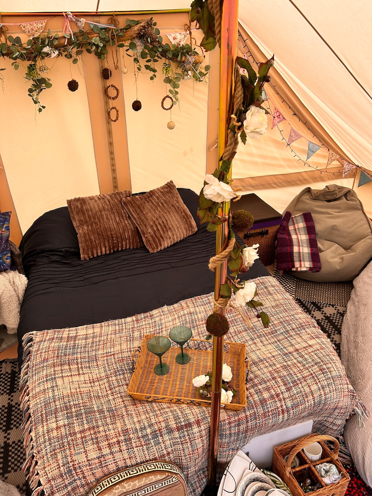 Nueva incorporación al favorito de los clientes Glamping Luxury Hob Hey Hideaways The Zen Den. (Nuevo en julio de 2025) Vuelve a conectar con la naturaleza en esta escapada inolvidable. Una tienda de campaña preciosa, espaciosa y serena, con una lujosa cama desplegable, diseñada en tonos malvas suaves y azules relajantes para fomentar el descanso y la relajación. Tiene capacidad para 6 personas y ofrece todo el encanto de la vida al aire libre con la comodidad de una experiencia de glamping de 5 estrellas. Tranquilo, elegante y perfecto para familias o amigos que buscan relajarse y reconectar. Asequible