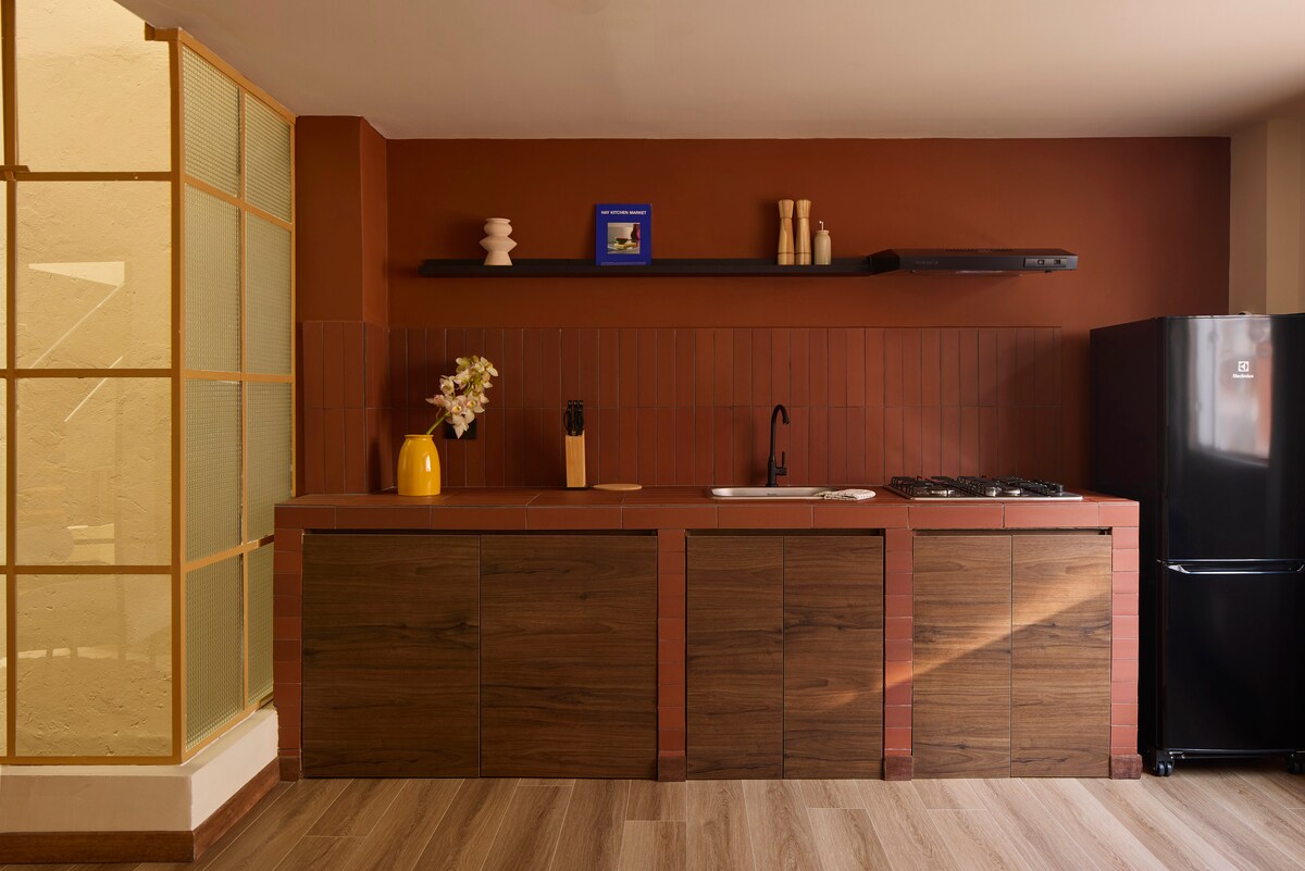 Welcome to my little home, it's a pleasure to share it with you! It has been built with love and has everything you need for long stays. It has a great location. The building is new and is equipped with several co-living areas to enjoy like a terrace, cooking lounge, sports bar, gym, coworking area, meeting room and laundry.