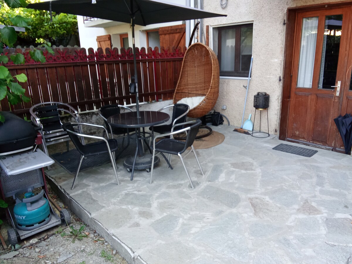 Impresionante apartamento tranquilo, totalmente nuevo, acogedor, con plaza de aparcamiento frente al alojamiento. Orientado al sur, tendrá una bonita terraza y un jardín privado (vistas a las montañas), disfrutará de un acogedor dormitorio con una gran cama doble, una sala de estar con cocina americana totalmente equipada y un baño con inodoro separado. Estará a 45 minutos de las primeras estaciones de esquí o Grenoble, y a solo 25 minutos de Chambéry y Albertville. Autopista a 5 minutos.