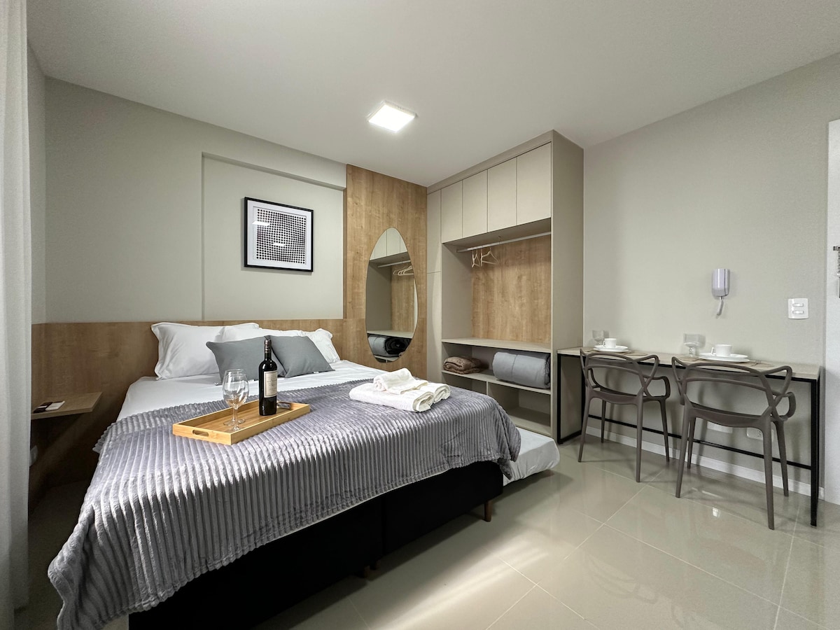Ubicado en un apartamento espacioso y elegante, con una cama súper cómoda para noches perfectas, ideal para 2 personas. Situado en el corazón de Batel, uno de los distritos más nobles de Curitiba, estarás cerca del comercio, servicios, restaurantes, hospitales y todo lo que necesites durante tu estadía. ¡Todo esto en un entorno seguro, tranquilo y cómodo, ideal para aquellos que buscan sofisticación, practicidad y bienestar en una ubicación simplemente perfecta!