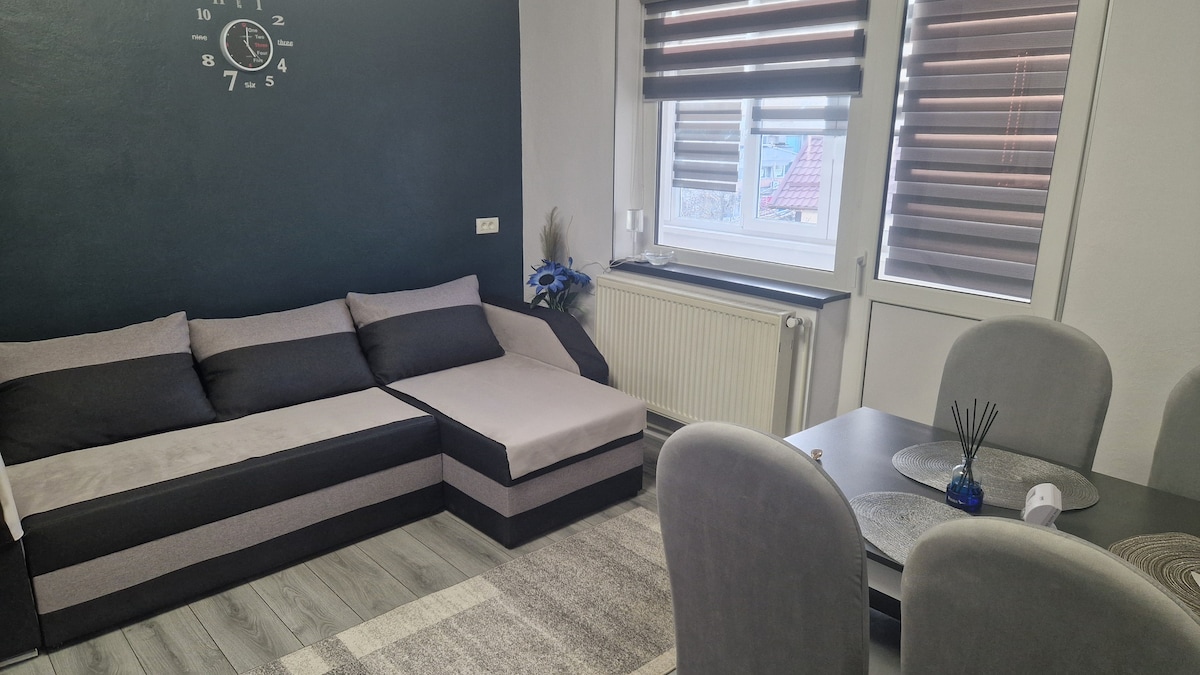 El departamento Marina se encuentra en una zona preciosa, con la posibilidad de relajarse en el patio. Un departamento espacioso y cálido, que consta de espacio abierto, con cocina, nevera, baño y arriba hay dos dormitorios, uno para dos personas y el segundo para una persona. El apartamento tiene su propia entrada, terraza y acceso gratuito al patio, donde puedes relajarte en el columpio o en una barbacoa. Está a menos de 3 minutos del centro cero de Curtea de Arges, o a 8-9 minutos a pie.