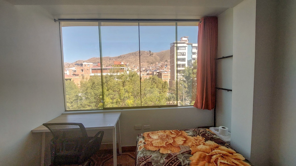 La urbanización magisterial es una de las mejores zonas de Cusco, muy segura, se tiene a disponibilidad todo el departamento con cama de dos plazas comoda y ropero. The magisterial urbanization is one of the best areas of Cusco, very safe, all apartment with 2 bathrooms and a large bed with closets, very comfortable.