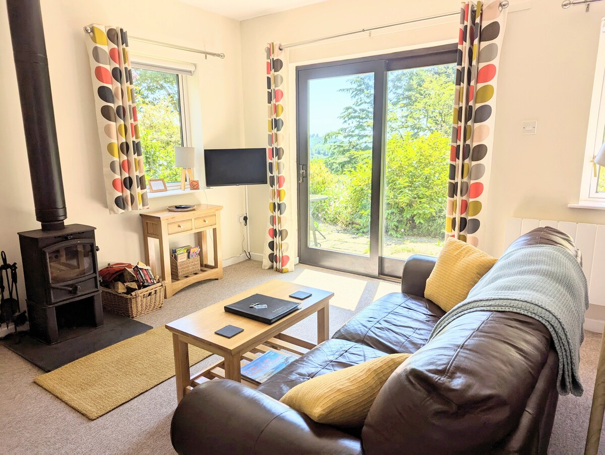 Cwtch Kate, cabaña con chimenea.
