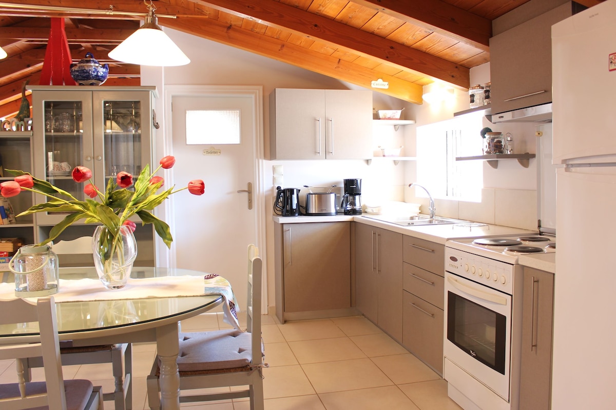 El apartamento Kanathos es un apartamento moderno en planta baja, construido en 2018, situado en Nauplio, a 1,5 km del centro del casco antiguo. Tiene un dormitorio con una cama doble tamaño queen y un loft con dos camas individuales, con posibilidad de cama doble. Está equipado con cocina completa, horno, fogones, nevera, cafetera, tostadora, etc. También tiene una terraza de unos 30 metros cuadrados con mesa y sillas adecuadas para relajarse. Diseñado adecuadamente para parejas y familias.