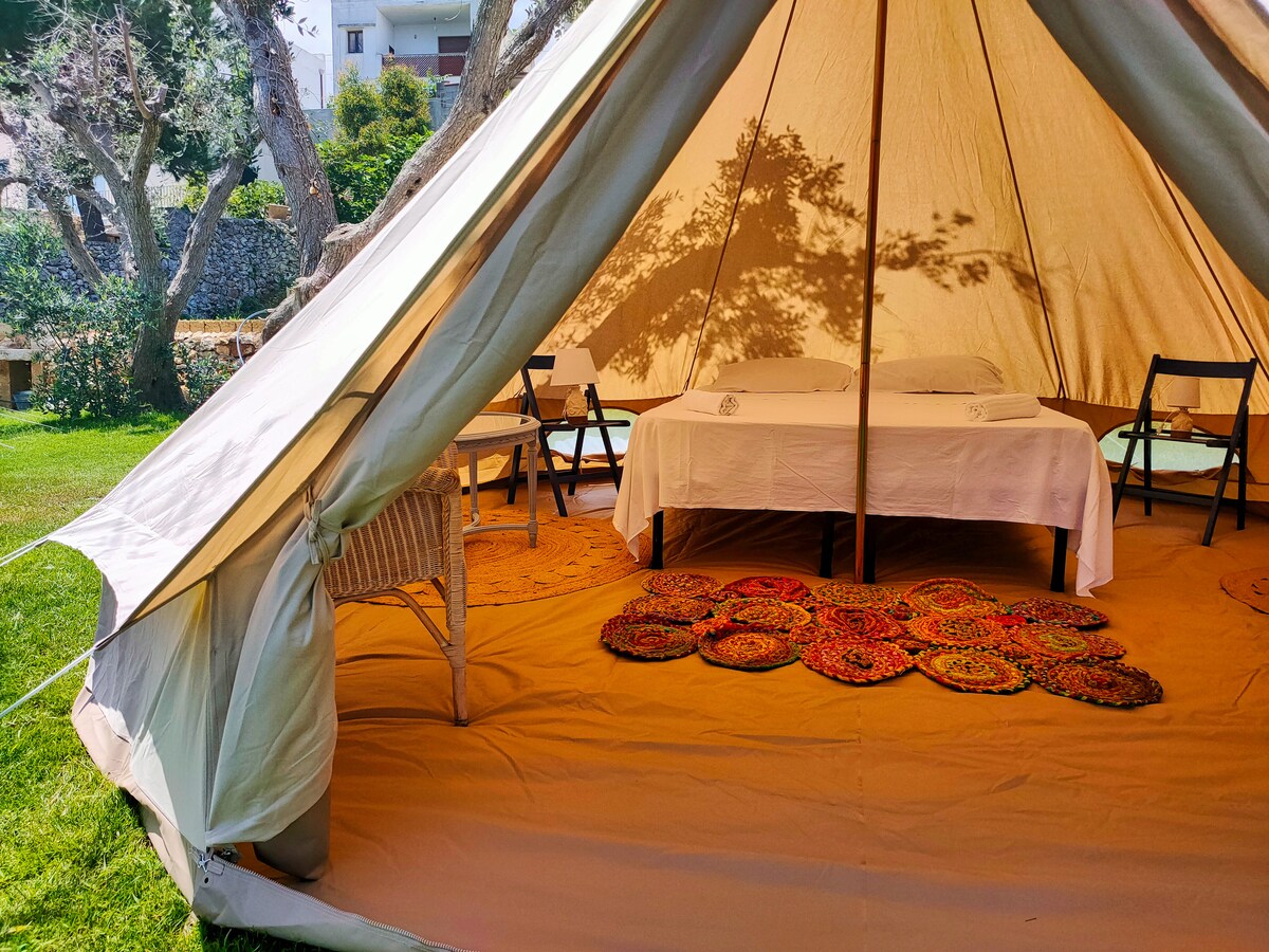 Duerme bajo las estrellas en la tienda glamping de Casa Camilla. Nuestra tienda de campaña de 5 m se encuentra bajo un antiguo olivar con vistas despejadas al mar, justo en el corazón de Marina Serra, a 2 minutos a pie de la piscina natural. La tienda tiene todas las comodidades imaginables: cama, nevera, aire acondicionado y electricidad, baño al aire libre, ducha, lo que proporciona la combinación perfecta de comodidad y naturaleza. El exterior está amueblado con hamaca y zona de estar y también tienes acceso a una zona de barbacoa.