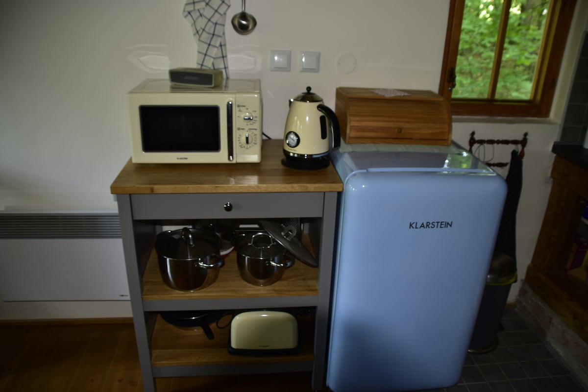 Luxusní chata na břehu rybníka Propast. Ideální na romantické dovolené pro dvě osoby (manželské dvojlůžko). Kuchyň: dvouvařič, myčka, malá lednice (velká lednice v přízemí), kávovar DeLonghi (espresso, latte macchiato, atd). O2Tv/Apple TV s přenosem na plátno, ozvučení Bose. Wifi. V obývací místnosti krb na dřevo. Věříme, že si u nás odpočinete a zrelaxujete.