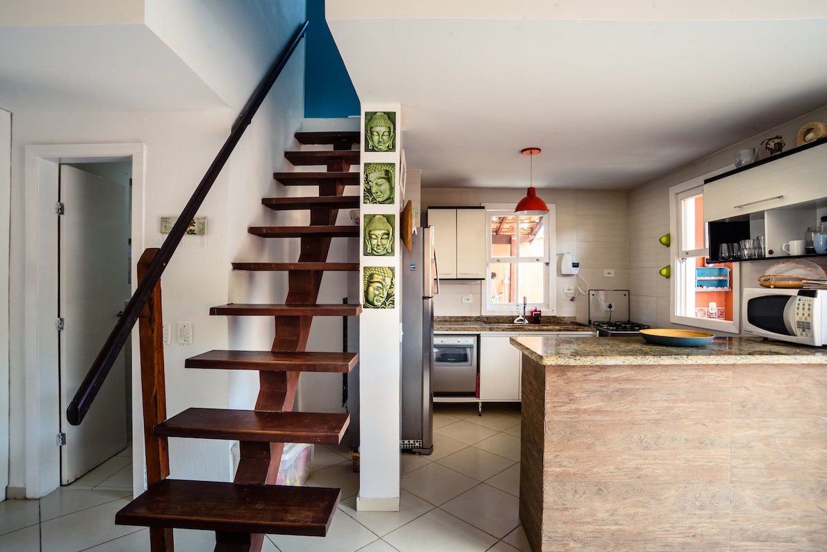 ¡Ven a disfrutar de una casa acogedora ubicada en la playa de Juquehy! Totalmente climatizada, equipada con electrodomésticos y una increíble terraza gourmet con parrilla. En el jardín, lo más destacado es un jacuzzi privado para relajarse. Wi-Fi de 300 megas y espacio dedicado para homeoffice. ¡Las mascotas son bienvenidas en nuestra casa! Condominio cerrado con conserjería 24 horas, piscina, sauna y sala de juegos. 2 plazas de aparcamiento. Estamos a 900 metros de la playa y a 3 cuadras del centro con farmacias, mercado y demás