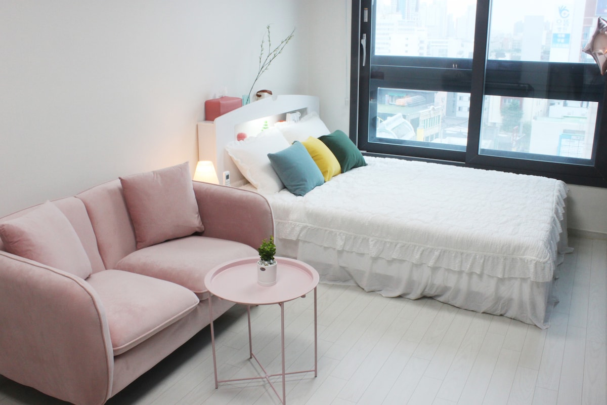 Después 🔻de hacer clic en el botón "Ver más", lea las instrucciones de uso.🔻 Hola, 'Quédate en un espacio hermoso.' Este es Bella Stay:) ¡Estamos llevando a cabo un evento de reseñas de salida tardía a las🩵 12: 00! 🩵 - Ubicado en el centro de Jungangno y Dongseongro, es conveniente para viajar a Daegu. - Proporciona un 'colchón de alta gama' y se mantiene limpio mediante el reemplazo diario de ropa de cama y desinfección. - Puedes usar netflex gratis usando el proyector de haz. - Proporciona un espacio de descanso limpio y cómodo con un moderno concepto blanco. - Puedes disfrutar de la vista de la ciudad desde el piso superior del edificio.
