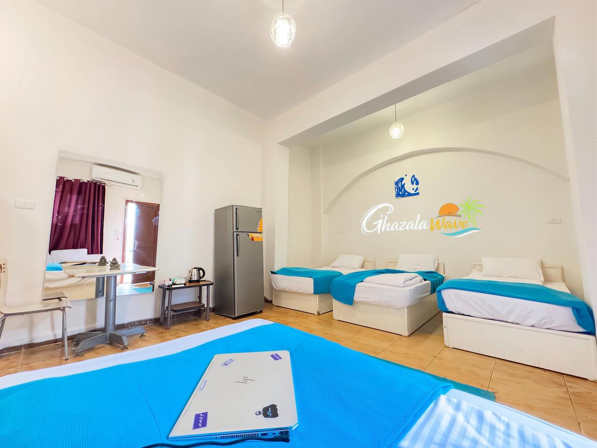 Stay right by the beach in this comfy, fully air-conditioned apartment — perfect for families or a group of friends. Enjoy the fresh sea breeze, a sunny rooftop with chill spots and sunbeds, and an equipped kitchen if you feel like cooking. It’s just a short 10-minute walk to Assalah Square, where you’ll find shops, cafes, and local vibes. Whether you’re sunbathing on the rooftop, relaxing indoors, or exploring Dahab, this place has everything you need for an easy, laid-back stay.