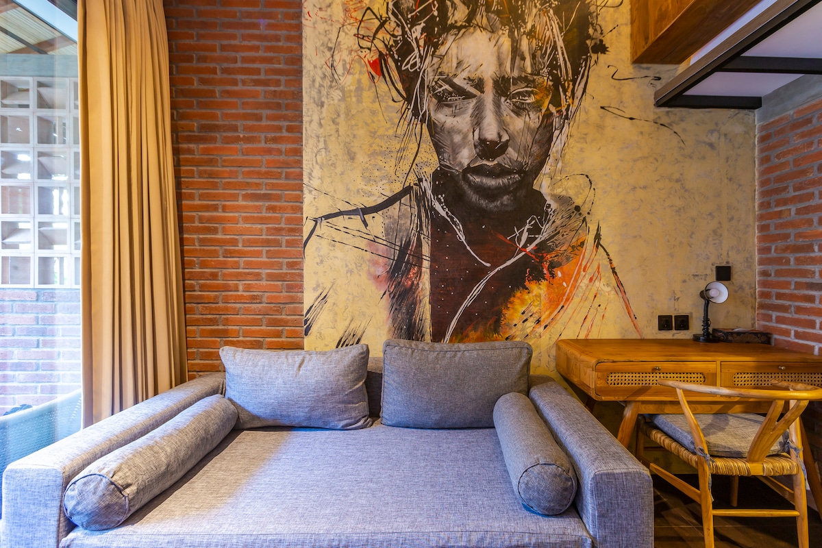 Ubicado en Jalan Tegal Sari, a 3 minutos a pie de Jl. Pantai Berawa, el principal acceso a la famosa playa de surf, Berawa Beach, Nyaman Apartments Canggu, está bellamente diseñado, construido y decorado por un arquitecto profesional, contratista y diseñador de interiores de Ade-Bali Architect Design & Build. Lo más destacado de la habitación es la cama de entresuelo en la parte superior y la sala de estar en la zona baja. Está a poca distancia a pie de varios cafés, restaurantes, alquiler de motos, playa, etc.