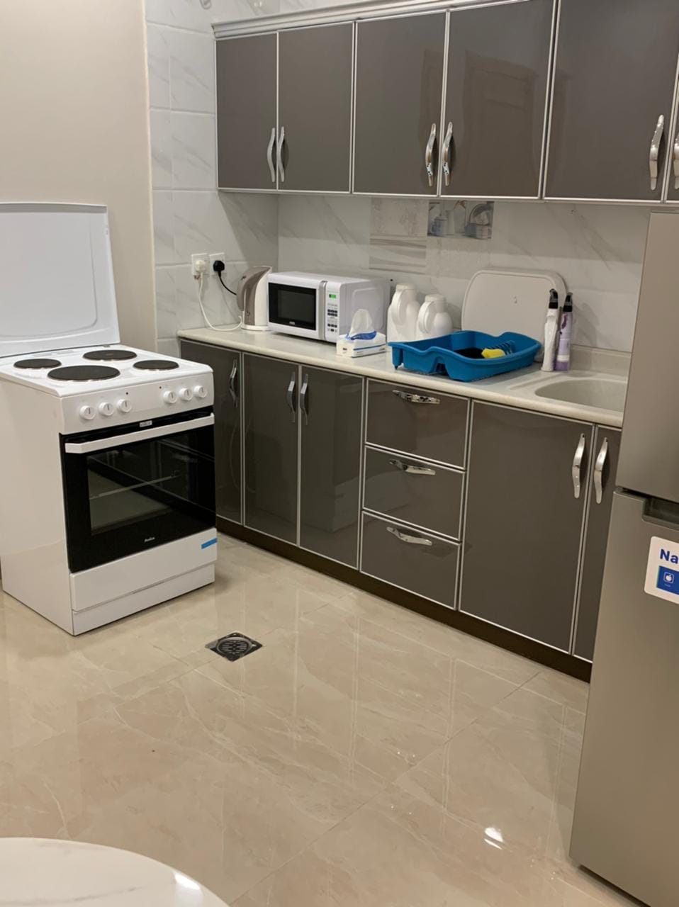Disfruta de una estancia perfecta en un apartamento espacioso y cómodo con un dormitorio con una cama grande y elegante, un amplio salón con una hermosa vista y una cocina totalmente equipada para una comodidad total. El apartamento está equipado con Internet de alta velocidad, un televisor de 65 pulgadas con Netflix y suscripción a Shahid, así como una lavadora para facilitar su uso. El departamento está en un lugar tranquilo que te ofrece un ambiente relajante lejos del ruido, por lo que es la opción perfecta para familias o amigos que buscan una estancia cómoda que combine lujo y tranquilidad. Ofrecemos una cuna. Por favor, avísanos al reservar o con suficiente antelación a la llegada para que podamos prepararla.