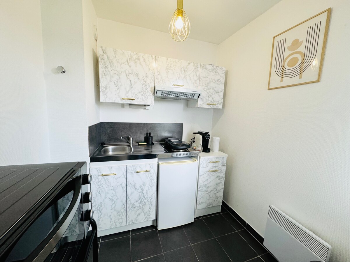 Bienvenido a nuestro apartamento que se encuentra en una residencia segura en una zona tranquila y cerca de todos los servicios, una plaza de aparcamiento privado. A 2 minutos de la autopista A20/A10. Este apartamento puede alojar hasta 3 personas. Una cama y un sofá cama, cocina totalmente equipada, Hay gratis Wifi. Todo lo necesario está en el lugar para su comodidad (ropa de cama, consumibles, lavadora)