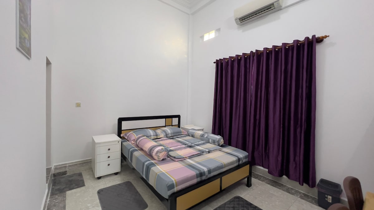 - Bedroom with air-conditioner, standing fan, two double size mattresses, pillows, blankets, wardrobe, television, working desk and chair and two sitting chairs. - Bathroom inside the bedroom with hot water. - Living room with standing fan, sofa. television, fridge, cupboard, microwave, gas cooker, dining table and chairs and other appliances. - Bathroom inside the living with washing machine. - Parking place at the front of the house for car and inside the house for motorbikes.