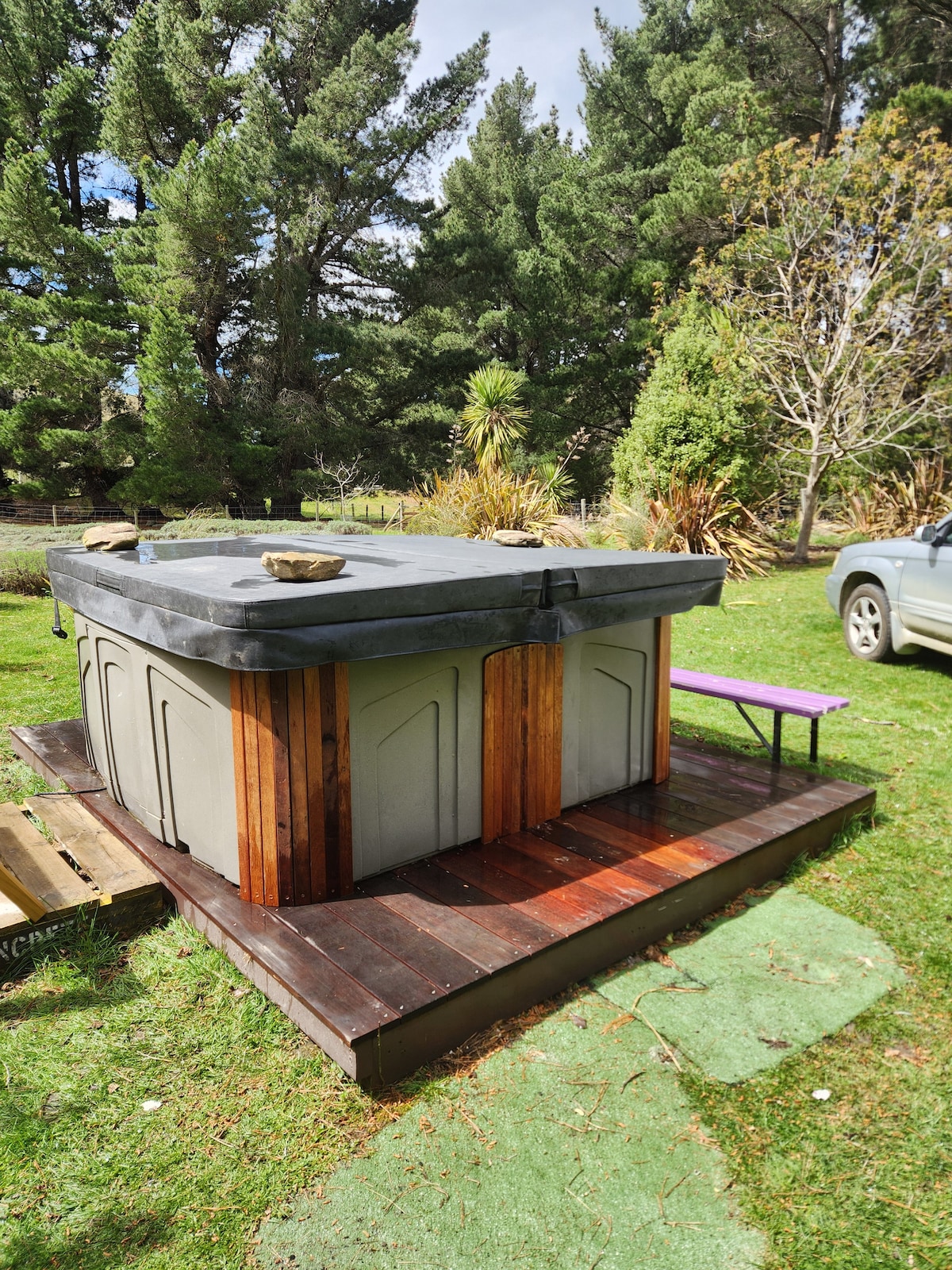 Disfruta de una estancia única en nuestra pequeña Lavender Farm, ubicada en las montañas Kakanui. Situada junto a la casa principal, encontrarás comodidad en tu propia cabaña de pastor, completa con un baño privado al aire libre y ducha. Toma las bicicletas eléctricas de montaña para dar un paseo por el campo de los alrededores, salta a uno de los pozos de agua de la propiedad. Al final del día, relájate en tu «spa» privado para 4 personas frente a la sauna rústica de leña, o simplemente relájate junto a la chimenea al aire libre bajo las estrellas.