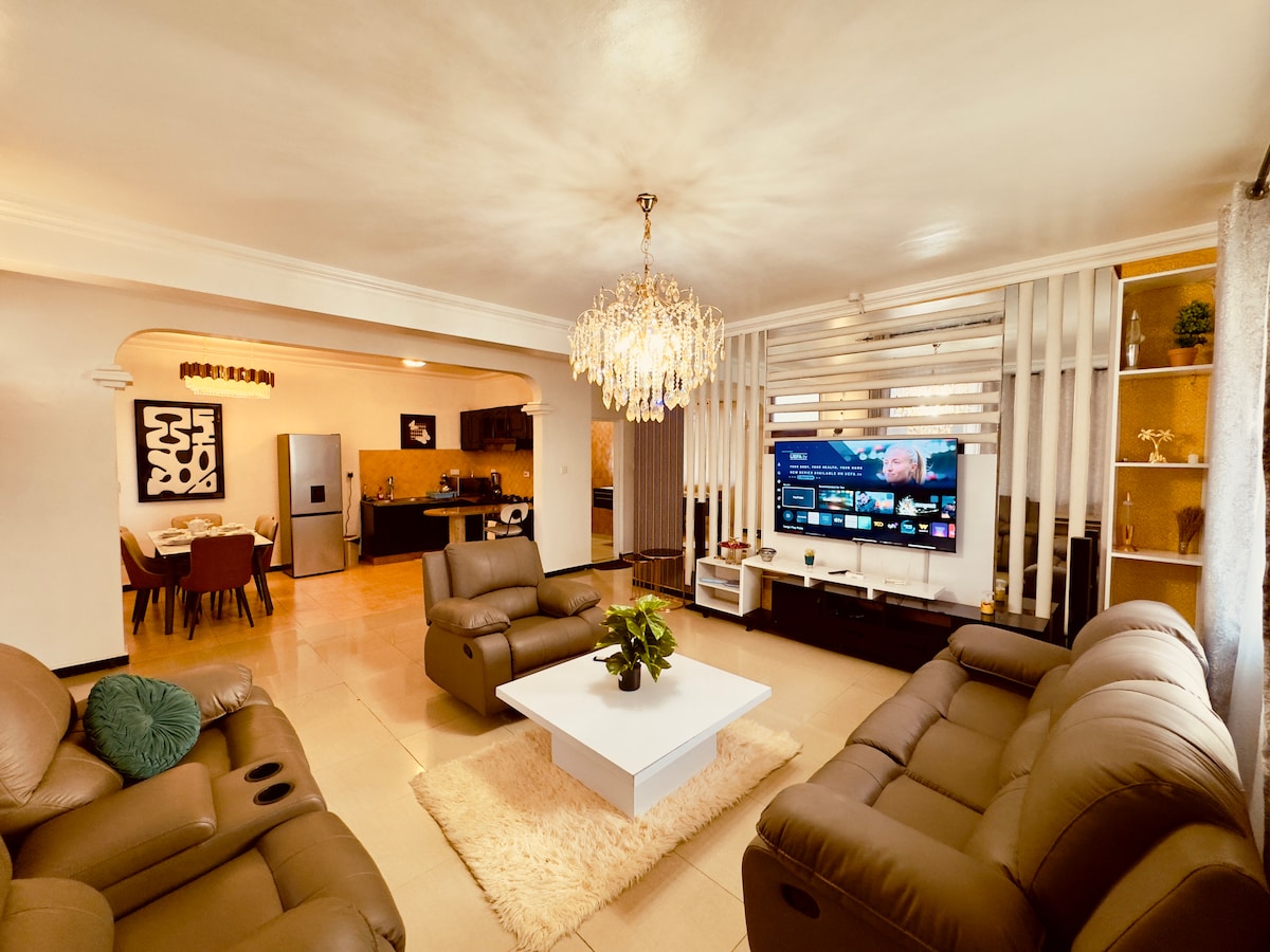 Ven a disfrutar de la villa de lujo Ubalozi para mayor comodidad con diseños modernos y sofisticados. Disfruta de cómodas camas y sofás con la máxima sensación de confort. > Ve programas y películas en una televisión de 75 pulgadas con Netflix gratuito, YouTube, Amazon Prime, Showmax y deportes en directo. > Experimenta el wifi de alta velocidad y el sistema de sonido de primera categoría con Bluetooth. > A solo 10 minutos del centro de la ciudad, playas, ferry de Zanzíbar y vibrante vida nocturna. > Suficiente espacio de estacionamiento, patio trasero con jardín adecuado para barbacoas. Disfruta de comodidad y lujo con nosotros.