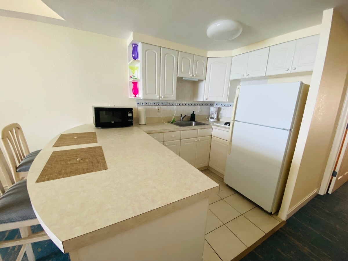 Diviértete con toda la familia en este elegante lugar. Daytona Beach Resort and Conference Center se encuentra en el corazón de Daytona Beach. Desde el salón puedes ver el océano. También puedes conducir hasta Ormond Beach a pocos minutos para ver los delfines temprano en la mañana. Saint Agustine, la ciudad más antigua de Estados Unidos, y Orlando están a 1 hora de nuestro centro vacacional. Nuestras piscinas están en reparación hasta la fecha de hoy. Si tienes alguna pregunta, no dudes en ponerte en contacto conmigo.